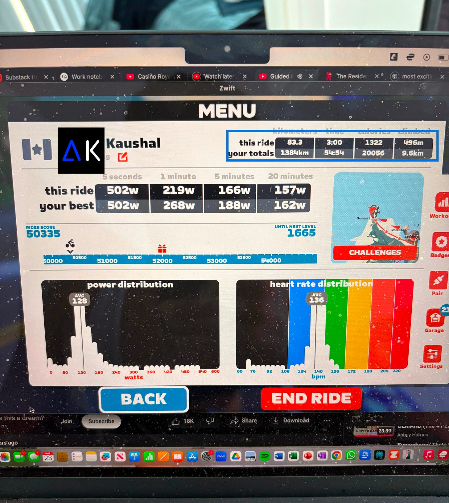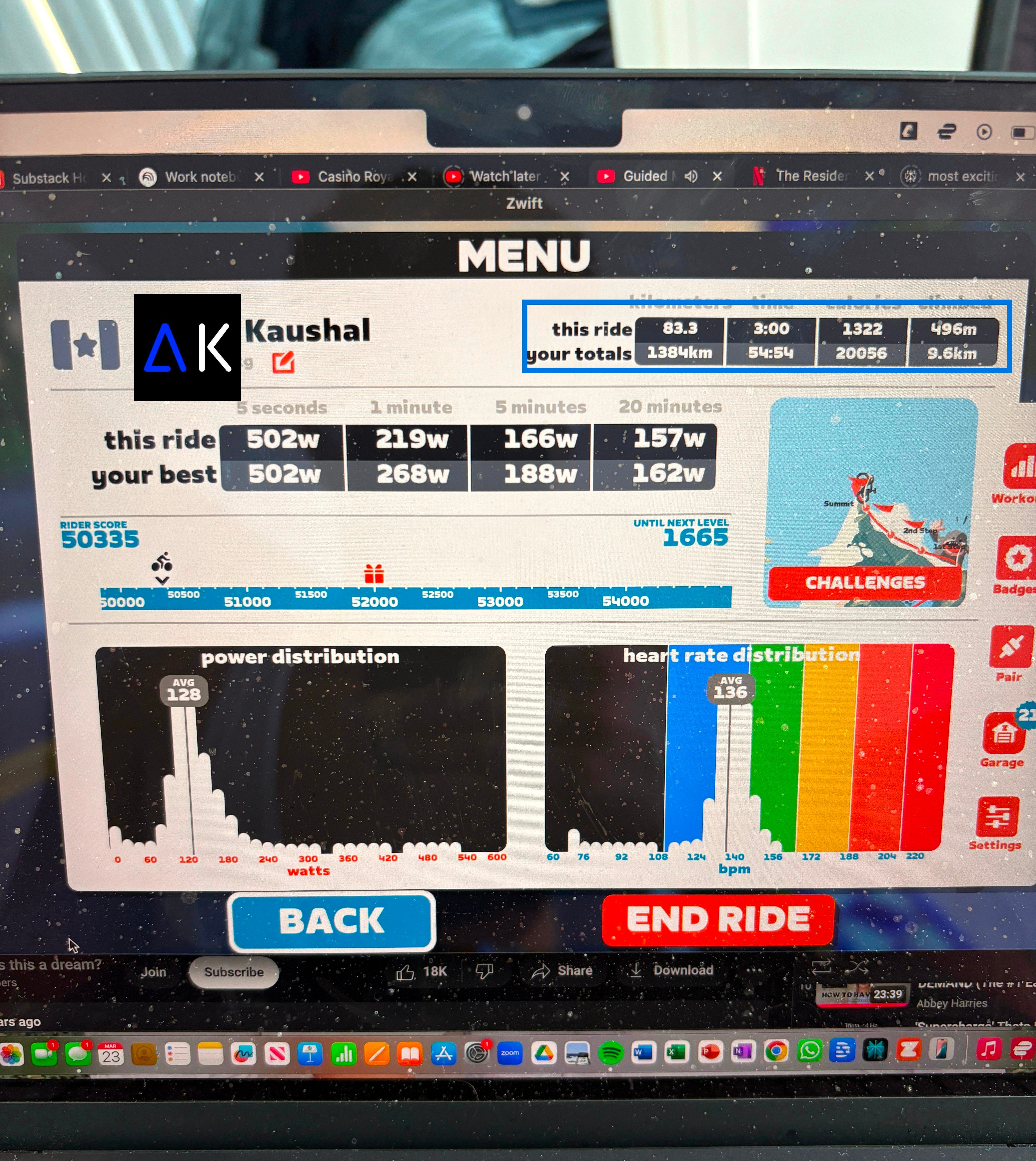 Think about it, you rode for 3 hours straight on the bike today and got up to north of 500W.