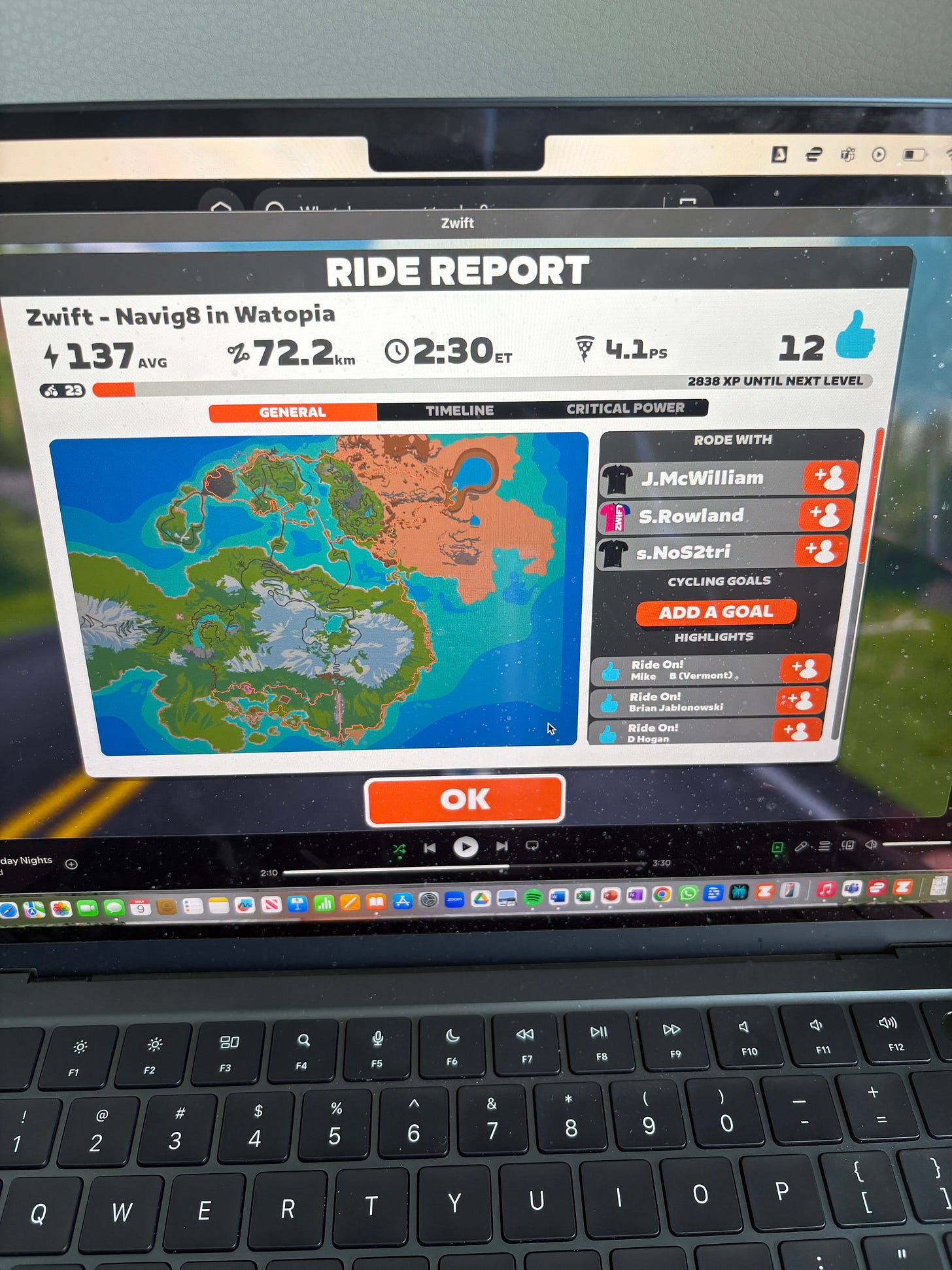 Biking - 138.2 km - big bike week. Really happy with the progress and speed. Key will be nutrition and getting much better at it, especially now that I’m at 2.5 hrs.