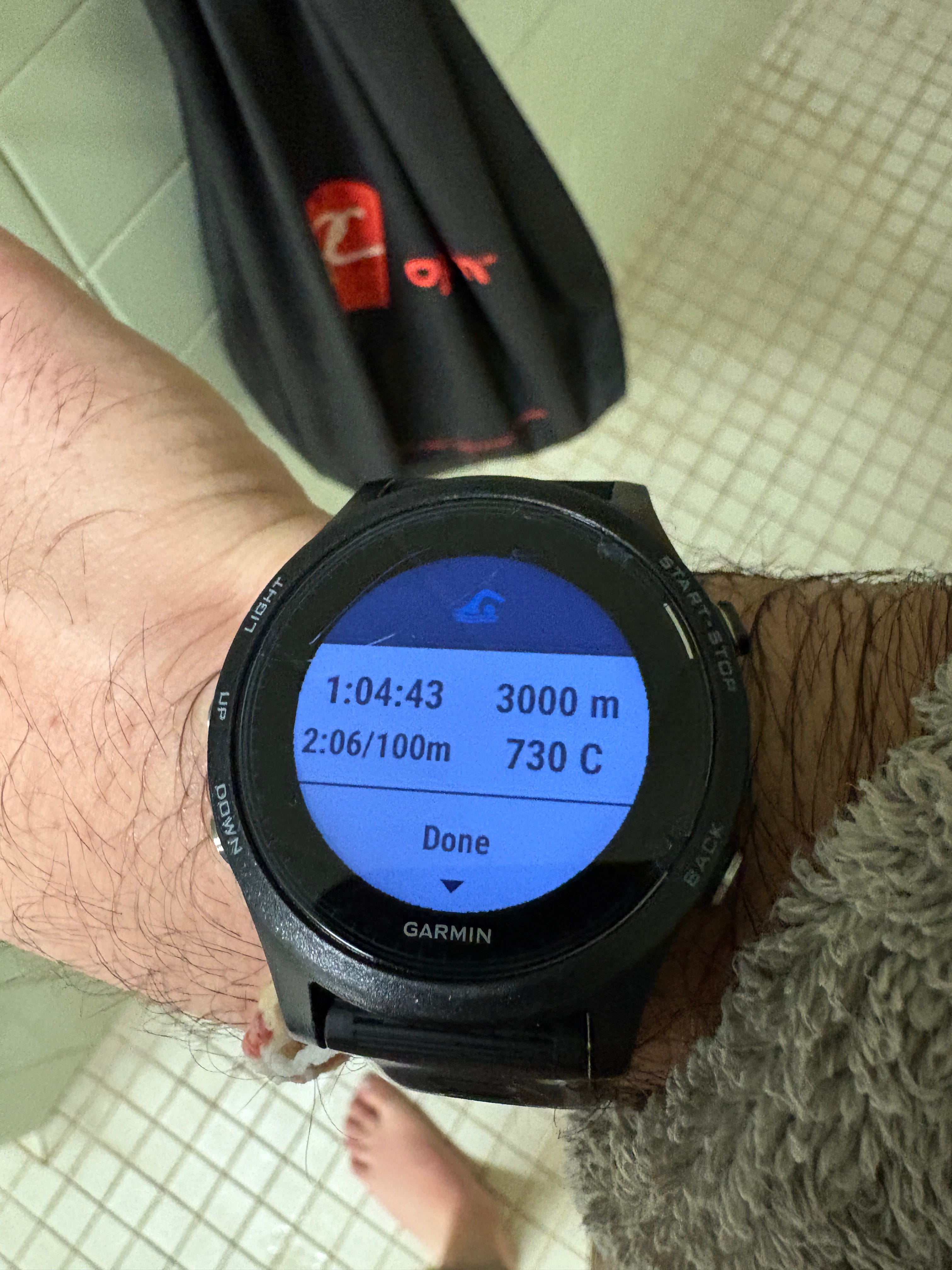 Swimming - 8.2k - 1 x 2400m, 1 x 2800m, 1 x 3000m. More swimming this week. Time is getting better, especially on the sprints. Still around 2:02/100m for the longer distances but know there’s still room to grow.